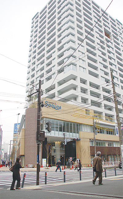 テナントには、飲食店やクリニック、ドラッグストアやコンビニエンスストアなどが入る予定で、各テナントにより開設時期が異なる。ツクイは3月1日に開所した。(株)大京と大和ハウス工業(株)が手掛けたマンションは住宅総数187戸、そのうち約50戸は再開発地区の地権者がすでに入居、または引き渡されている。