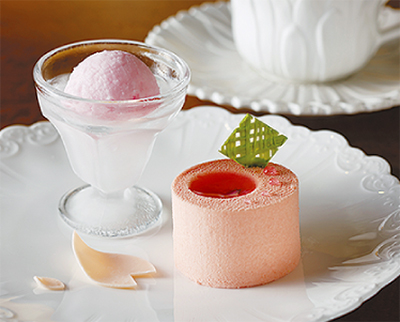 また2Fラウンジ「ソマーハウス」では4月12日まで「SAKURAケーキセット」(1600円・税サ込)を販売。ほんのりさくらが香る甘酸っぱいケーキとソルベに「TWGTea」の桜をイメージした高級ブレンドティーも選べる。みなとみらいの桜並木をのぞむ店内で、贅沢なひと時を。