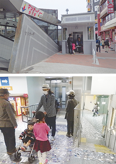 一方、スロープ代わりに設置された中央広場のエレベーターは階段9段分を昇降するだけだが、地上に出られると勘違いして乗る人が続出しており、マリナードでは「今後案内を掲示して周知徹底していきたい」と話している。