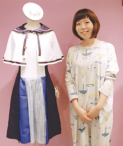 「(スカートの)グラデーションを実現するため、素材選びにも苦労しました」。メーカーと協議を重ね、ボタン一つにもこだわった制作過程を振り返る杉山さん。「将来の夢はデザイナー」と話してくれた。