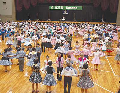 カントリーミュージックにのせて踊るスクエアダンス。その初心者を対象とした年に一度の発表会「DoSaDoパーティー」が8月29日、中区の横浜文化体育館で行われ、県内の小学生から90歳までの約650人が参加した。女性はフレアのスカート、男性はカントリー調のシャツで軽快なステップを踏んでいた。