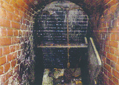 同構造物は地下3mほどの深さの横に伸びるトンネル状の通路があり、途中で曲がったところでさらに3mほど階段で下がっていた。