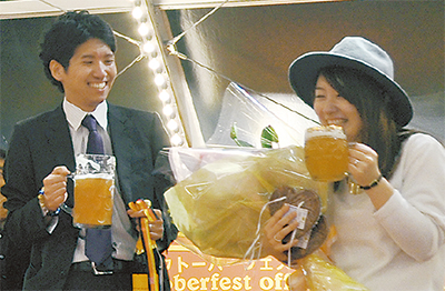 (株)横浜赤レンガの久米本憲一社長は「オクトーバーフェスは単なるビールのイベントではなく、交流の場を目指している。今後も出会いの場でありたい」と話し、お祝いの言葉を送った。