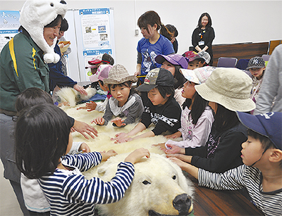 最後には本物のシロクマの毛皮が披露され、子どもたちは顔や毛皮を触りながら「歯おおきい」「毛ふわふわ」「爪すごい」など歓声をあげていた。