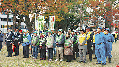 加賀町警察署は「年末年始特別警戒」実施を踏まえ12月1日、横浜公園で出陣式を行った。