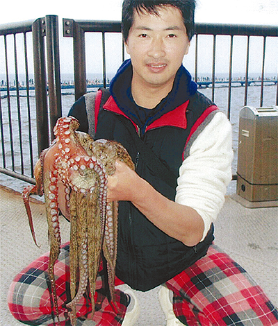 大漁なのは9月末だが、1月の獲物が一番大きいという。1月6日には、足の太さが大人の手首ほどにもなる4・2kgの大物を釣り上げたばかり。「ハマると極めたくなる性格。記録に残るタコを釣りたい」と話しに熱が入る。
