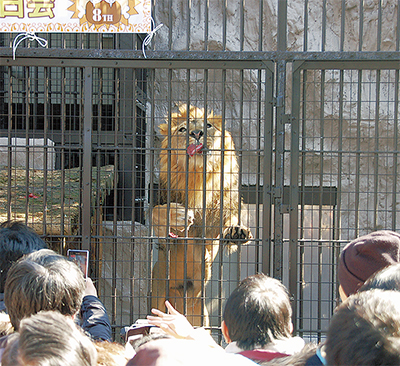 野毛山動物園のインドライオン「ラージャー」の8歳の誕生日会が2月11日に行われ、午前と午後の2回、鶏頭や馬肉などがプレゼントされた。