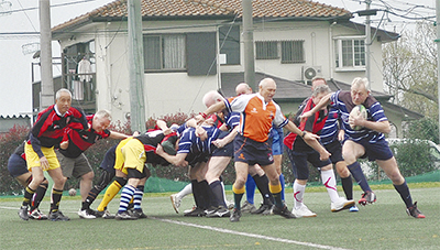 中区矢口台にある日本最古のスポーツクラブ「横浜カントリー&アスレチッククラブ」(YC&AC)で4月2日、日本ラグビー150年を記念した大会が開かれた。小学生や女子チームのほか、往年のメンバーも参加して、周年を祝った。