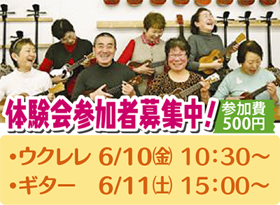 横浜駅西口徒歩5分の「S&S音楽教室」でウクレレ、ギタークラスの体験会が開かれる。体験会で同年代の仲間と一緒に楽器の持ち方から丁寧にレッスン。楽譜が読めなくても楽器を持っていなくても大丈夫。