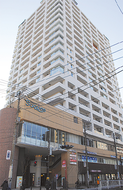 地下1階、地上22階建ての日ノ出サクアスは1階から3階はテナントスペース、4階から7階は有料老人ホーム「ツクイ」、9階から上はマンションになっている。竣工から約1年が経ち、1階には飲食店やコンビニエンスストアが、2階は眼科や耳鼻科など5つの病院と2つの調剤薬局が並ぶ医療モールとなっている。3階は空室が続いていた。