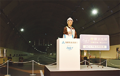 工事の経過説明をした同社の寺山徹神奈川建設局長は、「ネットワークが拡大し、新横浜と本牧ふ頭まで10分、新横浜駅から羽田空港も10分短縮される」とアクセス向上をピーアールし、「地域の方、関係機関の協力で完成の目途が立ったが、工事は何があるかわからない。安全に確実に進めていきたい」と話した。