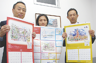 横浜信用金庫=本社・中区尾上町=はこのほど、身近な風景をイラスト化した「横浜ひとまち百景」を使用した2017年版のカレンダーを完成させた。横浜信金によるこのカレンダーの取り組みは2年目。印刷は、横浜ひとまち百景の事務局を担う(株)大川印刷が手がける。