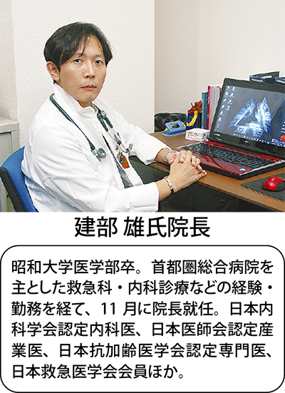 救急科や内科診療などの経験・勤務を経て院長に就任した建部雄氏医師は「身体的な悩みについて、医療はまだまだ対応しきれていません」と指摘する。