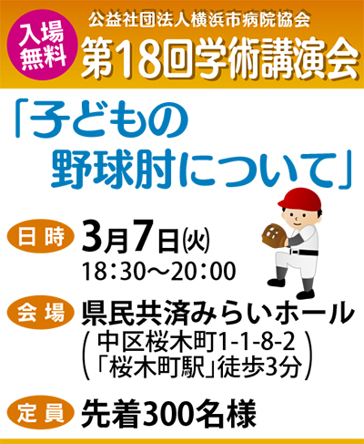 野球・ラグビーなど多くのプロスポーツ選手やアマチュアアスリートを治療してきた、横浜南共済病院の山崎哲也先生による講演会が3月7日(火)、桜木町の県民共済みらいホール(県民共済プラザビル1階)で行われる。公益社団法人横浜市病院協会の主催。入場無料。
