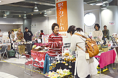JR関内駅直結のマリナード地下街で3月4日、手作り雑貨の販売などを行う「駅チカアート市」が開催された。これは雑貨のネットショップを運営する榊剛史さん=人物風土記で紹介=が主宰するもの。