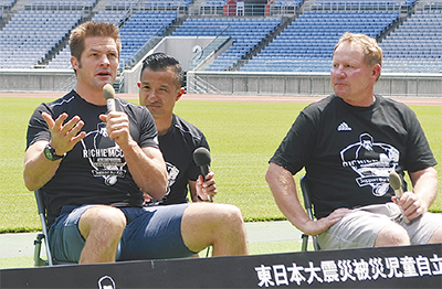 マコウさんは、東日本大震災で被災した子どもたちの自立支援を目的としたチャリティー企画の一環で来日。この日は、マコウさんらのほかに、元日本代表主将のアンドリュー・マコーミックさん、トップリーグで活躍する小野晃征選手がトークセッションに参加した。