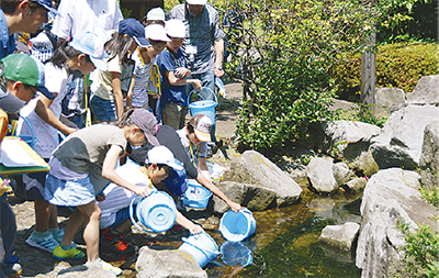 毎年恒例のあゆの放流式が中区本牧の中部水再生センターで6月15日に開催された。