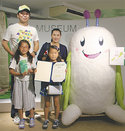 来館200万人目となった千愛ちゃんは「今日が4回目の来館だったけど、びっくりした」と感想を話した。父親の憲章さん(43)は「お姉ちゃんが小学3年生で、学校で蚕を飼育しているので、今日は蚕の勉強に来ました。家族で蚕が大好きです」と話した。