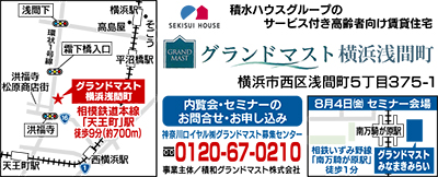 積水ハウスグループのサービス付き高齢者向け賃貸住宅「グランドマスト横浜浅間町」は、60歳からの元気で安心な「住まい方」を提案。「引っ越してからの生活の方が元気になった」という声に代表されるように、「健康と生きがいを両立する」点でも注目を浴びている。日中はリビングアテンダー、夜はナイトスタッフと警備会社による駆けつけ体制が整っているのも魅力の一つ。建物内2階にある浅間コミュニティハウスやカルチャースペース、趣向を凝らしたメニューが人気のおひさまカフェも利用することができる。内覧会を随時開催しているので、気軽に訪れてみては。