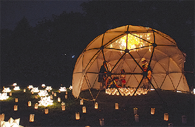 「巡りゆく夏に感謝して、祝い見送る」として今年で8年目。今年は「緑の森の小さな影」をテーマに、梅園や辻広場周辺、池などの一帯に約5千個のキャンドルを設置。地元の明神神楽会による獅子舞や和の音ライブもあり、幻想的な空間を演出する。担当者は「子ども向けの工作教室も行いますので、夏の思い出づくりにお越しください」と話す。(問)同公園事務所【電話】045・333・5515