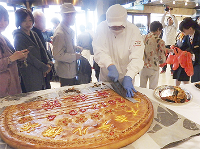 この催しは、来館者とともに中秋節を祝うために1994年から行われているもので、前日に重慶飯店の工場で焼き上げられた大きな月餅が約300人分に切り分けられ、配布された。