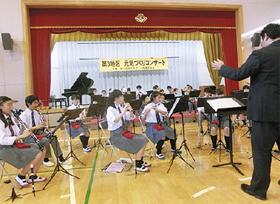 中区第三地区連合会主催による「元気づくりコンサート」が10月9日、立野小学校体育館で行われ、地域住民ら約400人が参加し盛り上がりをみせた。