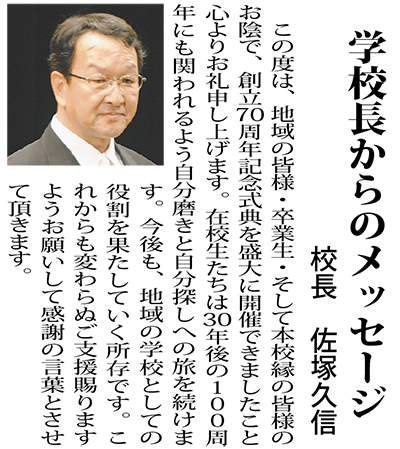 式典は2部制。前半は「70年間の歩み」と題し、1947年の開校時から現在までを当時の世相を紹介するニュース映像とともに振り返った。合間には卒業生や元教諭、PTA役員などがゲストとして壇上に。現役生徒が往時の思い出などを質問した。