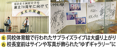 同校ライブの写真は「常に先輩を感じられるように」、各学年の昇降口に貼ってあるという。「ゆずは岡中生にとって特別な存在。自慢できる先輩なんです」