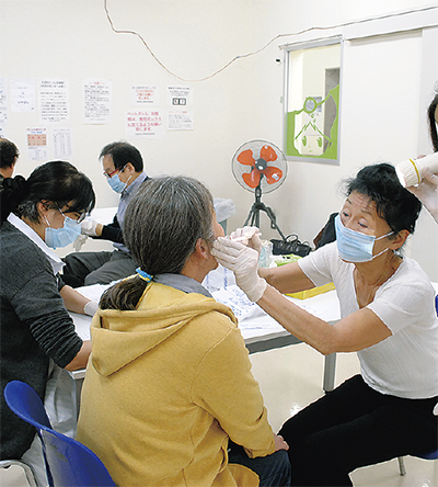 講座の後には参加者への歯科検診も行われた。60代の女性は「入れ歯を作ったが痛くて使っていなかった。ちゃんと使わなきゃと思いました」と医師のアドバイスを聞いていた。