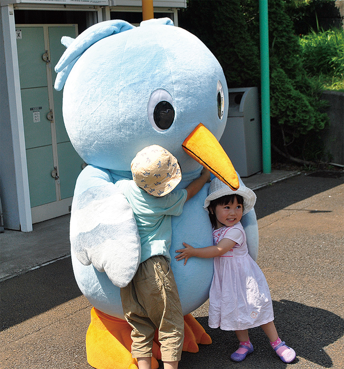 お披露目の際には一緒に撮影をしようとする人が途切れなかった。町田市在住の藤原一路くん(5)と菫ちゃん(2)は「かわいい」と嬉しそうに一緒に写真を撮っていた。