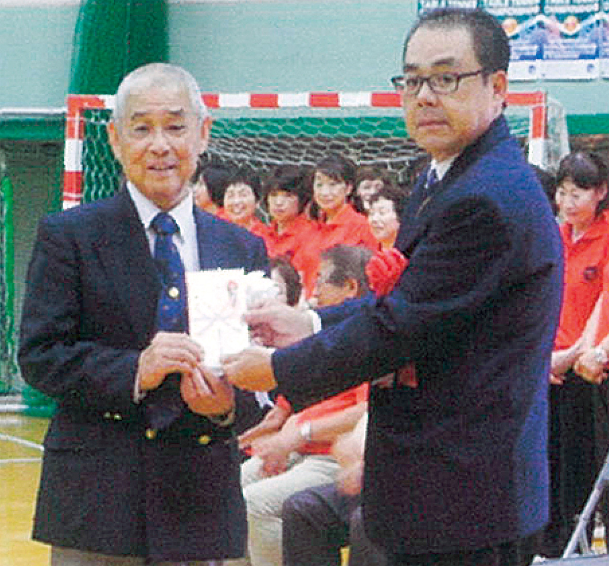 中区を拠点に奉仕活動を行う横浜中央ライオンズクラブ(井出正夫会長)が、日本知的障がい者卓球連盟(山口宇宙会長)の大会運営費として3万円の寄付を行った。6月9日、10日に平沼記念体育館で開催された2018FIDジャパン・チャンピオンシップ卓球大会の開会式の中で、同クラブの井出会長から山口会長に寄付金が手渡された=写真。