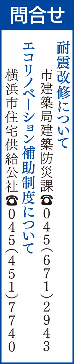 市は耐震化と併せて省エネ住宅の普及促進にも取り組み、断熱改修などの省エネ改修工事への補助制度を実施。耐震改修工事と省エネ改修工事を併せて行う場合に、両方の補助制度を併用できる。省エネ改修補助制度の限度額は最大80万円。