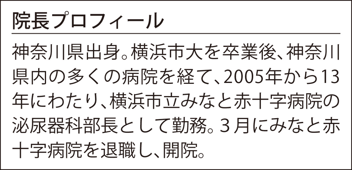 つちや泌尿器科・内科は「横浜の本牧・山手の地域の方々の健康維持に少しでも貢献したい」という土屋ふとし院長の思いから、5月に開院した。