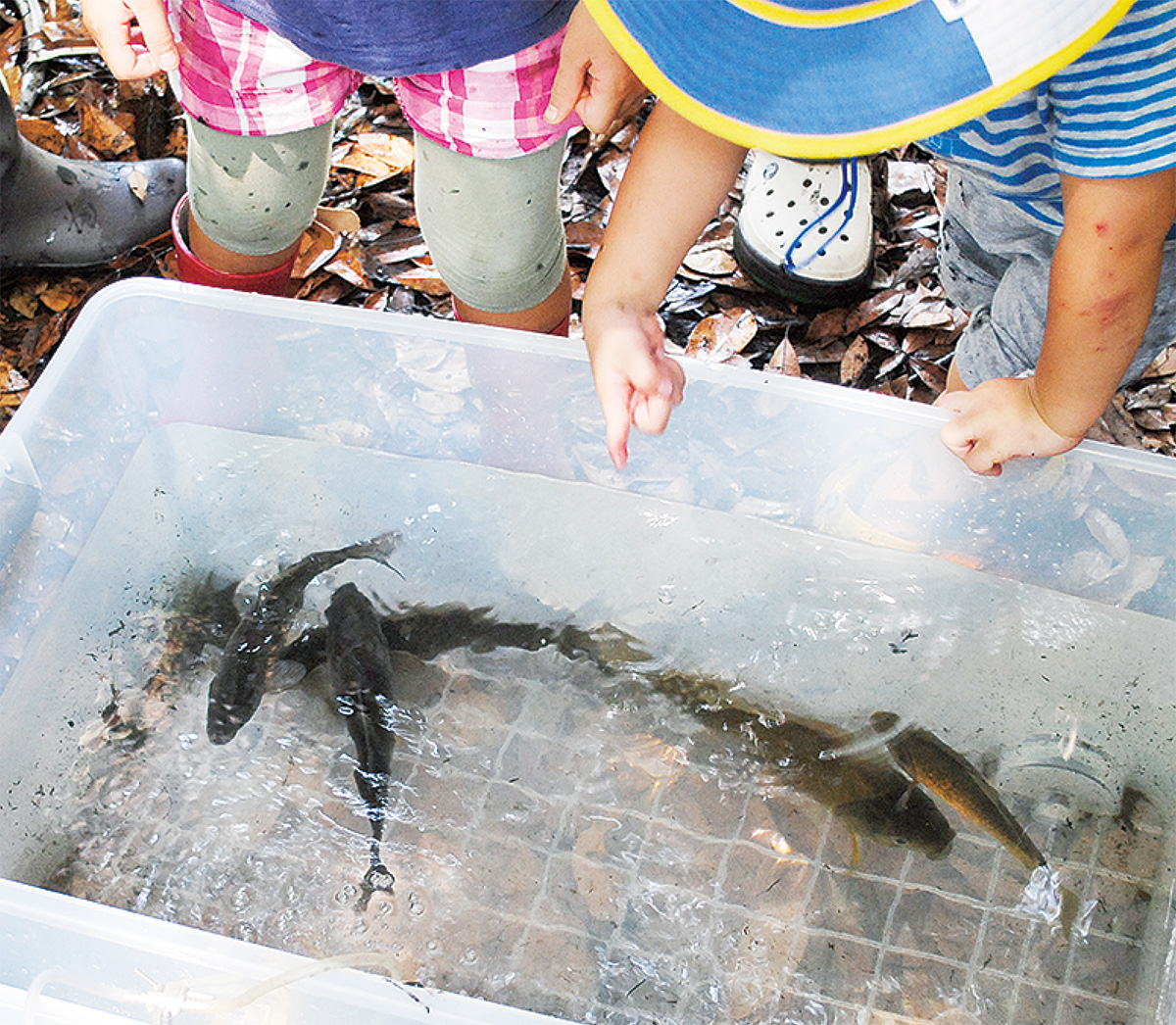 人気TV番組をほうふつとさせる、根岸森林公園の池の水を抜いて生き物探しをするイベントが8月4日に行われた。