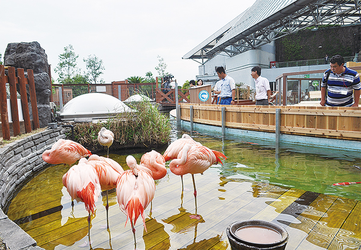 中でも4階に位置する「フォレストリウム」では、海の生き物だけでなく陸上生物や水鳥も展示。海と森のつながりが凝縮された生態系を表現した。また、エサやりや、握手ができる”生き物と触れ合う”プログラムも充実している。
