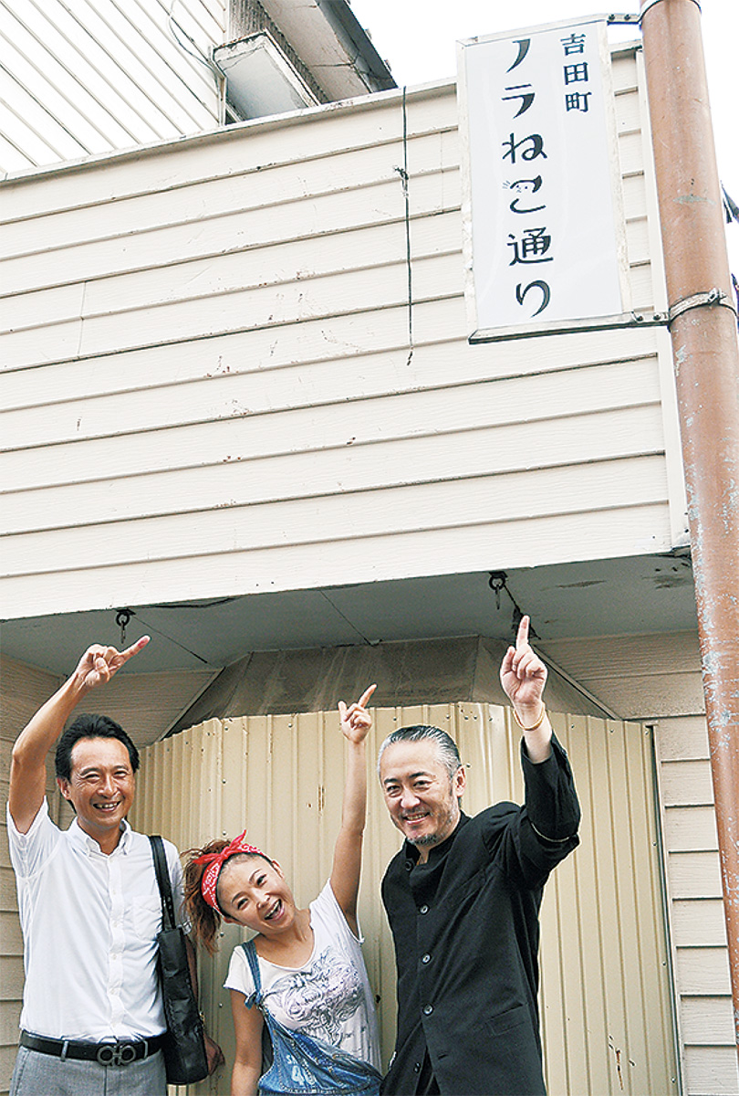 吉田町の裏通り「おいしんぼ横丁」がこのほど「吉田町ノラねこ通り」に改称され、新たな看板を設置、8月25日のビアガーデンイベントでお披露目された。新名称で知名度アップを狙い、町の魅力をアピールする。