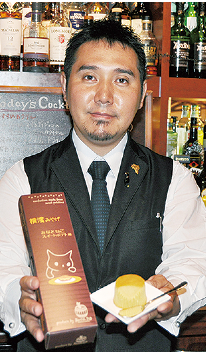 吉田町本通りのバー『バレルポッド』から発売された「みなとねこスイートポテト」も猫がモチーフ。店のロゴの黒猫と人気のスイートポテトカクテルをイメージした土産商品だが、たまたまノラねこ通りの改称と重なった。吉田町のバーが新しい横浜土産を発信することで「吉田町やバーの街横浜のPRにつなげたい」とマネージャーの倉本淳哉さん。同店とグランドキヨスク新横浜で販売中。