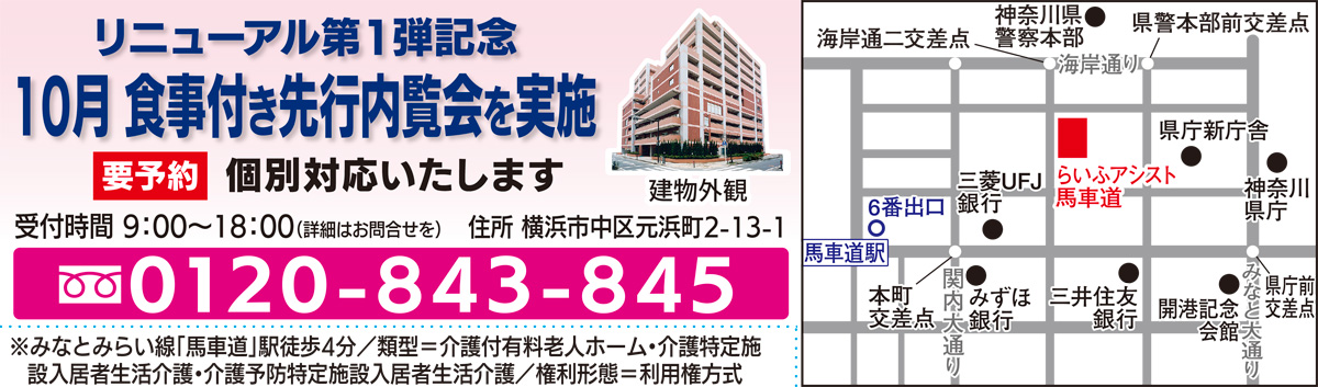 現在、改修第一弾を機に「先行内覧会」を開催中。申し込み・資料請求をご希望の方は、【フリーダイヤル】0120・843・845へ。