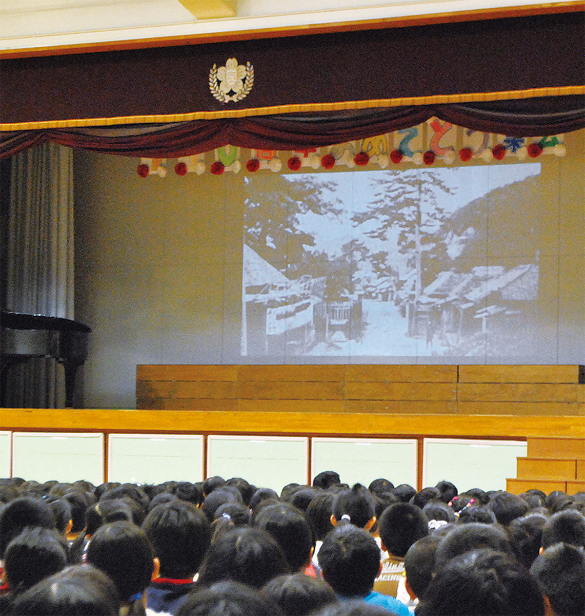 集会が始まる前には過去の学校の写真を使ったスライドショーなどが流された。110周年の記念事業の渡邊輝夫実行委員長はあいさつで「宮谷小学校の夢と勇気と知恵を育む教えは110年、培ってきた。大人になった時に、卒業生であることを誇りに思える時が必ず来ると思います」と話した。