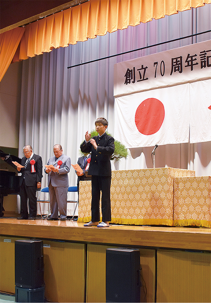 中区本牧原の横浜市立大鳥中学校(榮修吾校長・生徒318人)が今年で創立70年を迎えた。それを記念し11月22日に同校体育館で式典が開かれ、在校生や教職員、来賓をはじめ保護者らが記念すべき節目を祝った。