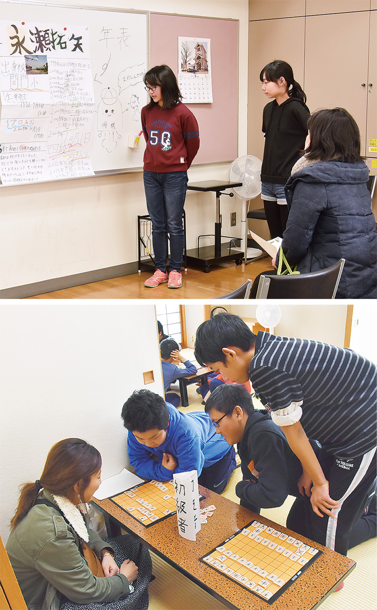 間門小学校6年2組の児童37人が、同校出身のプロ棋士・永瀬拓矢七段(26)を知ってもらおうと3月5日、本牧地区センターで「本牧出身永瀬プロ棋士を応援する会」を開いた。