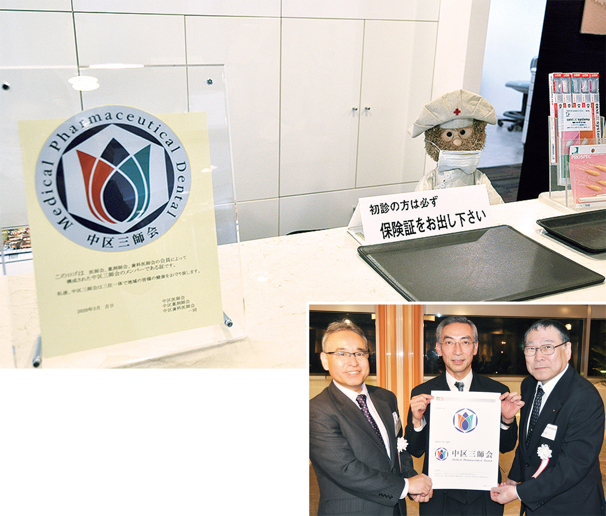 横浜市中区医師会、歯科医師会、薬剤師会による「中区三師会」のロゴステッカーがこのほど完成し、会員医院と薬局で掲示がはじまった。
