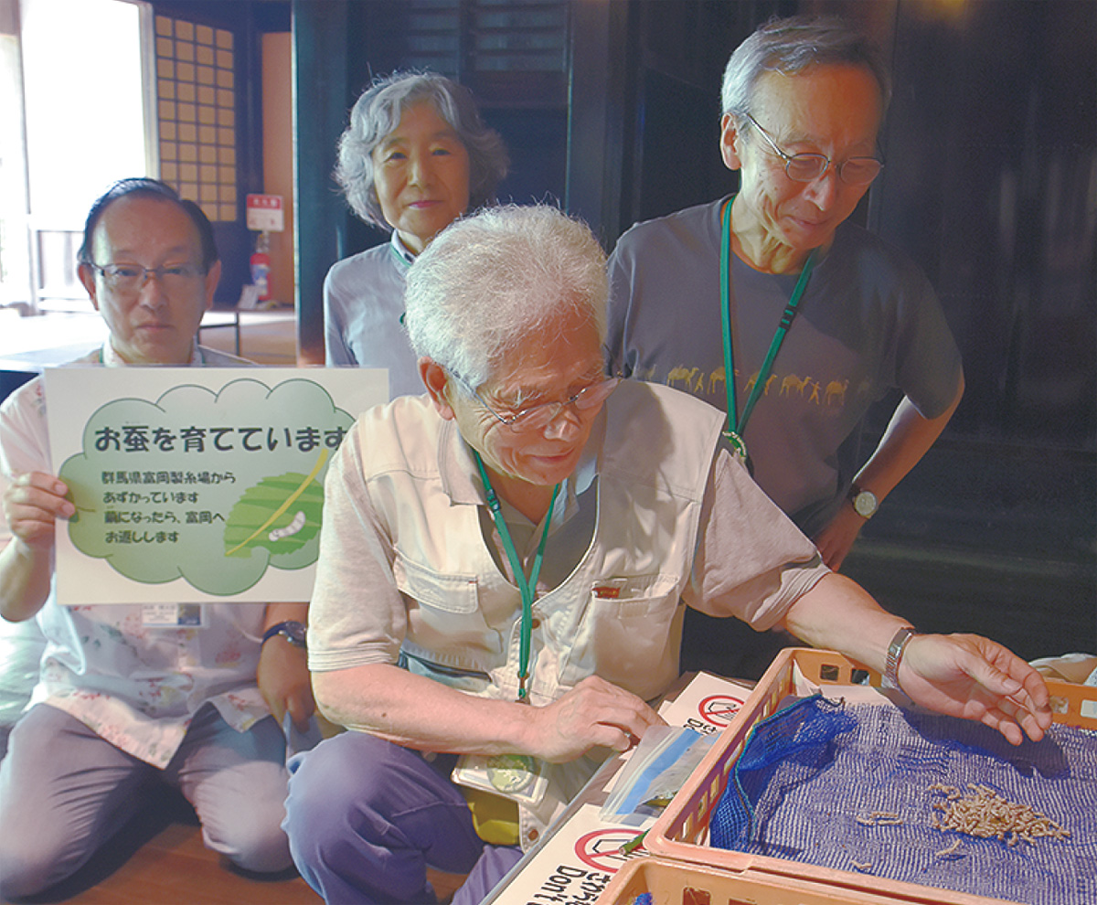 世界遺産として知られる富岡製糸場を同園創設者の原三渓がかつて所有、経営していたことが縁になり始まったもので、今年で5年目。同園のボランティアが、幼虫が繭をつくるまでの間、交代で餌やりや掃除、来客への説明などを担っている。