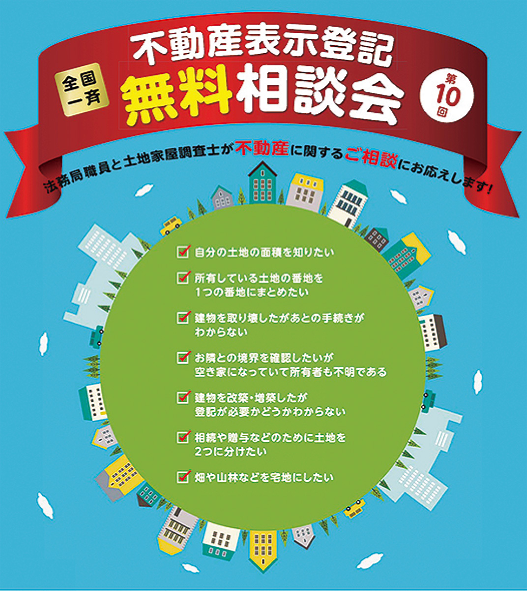 「全国一斉不動産表示登記無料相談会」として神奈川県土地家屋調査士会=西区楠町18番地=が主催するもので10回目=写真。
