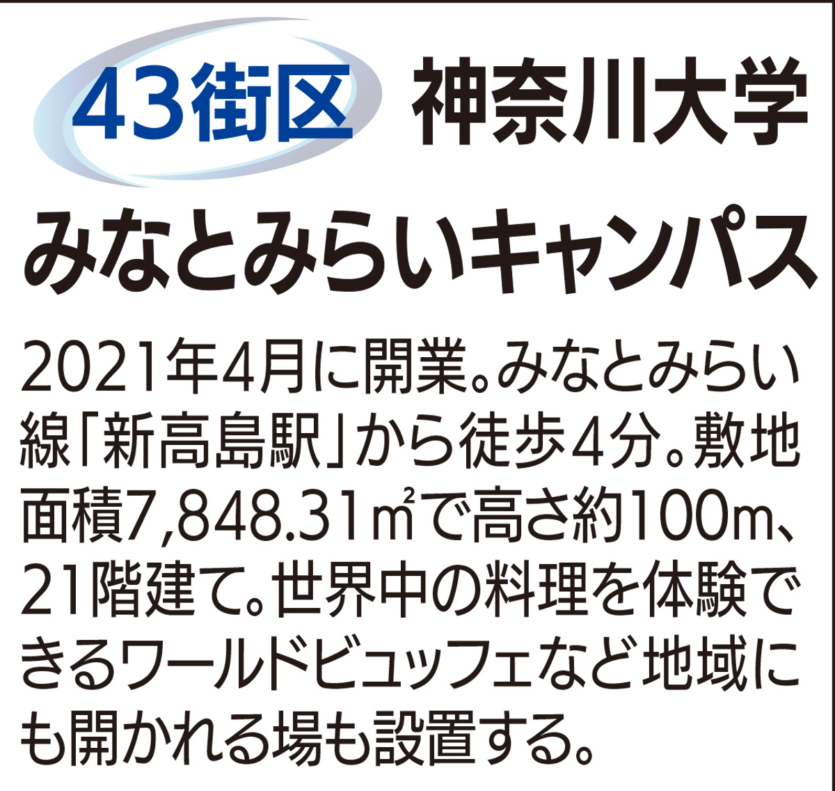 2021年4月からみなとみらい21地区(MM)の43街区に新キャンパスを開業する神奈川大学はこのほど、「国際日本学部」の創設が文部科学省に受理されたことを発表した。同学部は20年4月から横浜キャンパス=神奈川区六角橋=に開設された後、21年4月からは「みなとみらいキャンパス」に移転する。