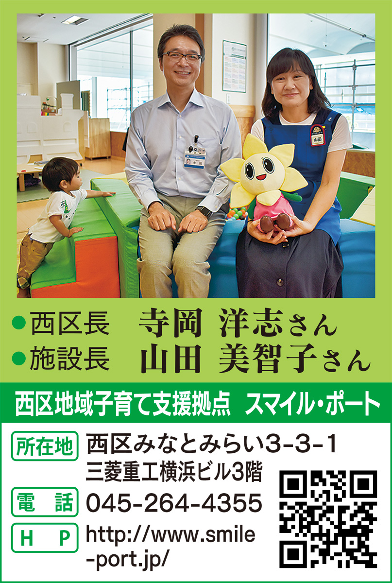 区役所や地域団体では様々な育児の支援施策を行っており、一人でも多くの子育て世帯にその情報を届けたいと思っています。そこで両者をつなぐ役割を担うのが、みなとみらいにある地域子育て支援拠点「スマイル・ポート」です。