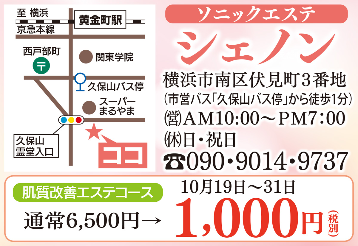 「若々しく元気なお肌へ導きます」というのは、南区伏見町にあるソニックエステ「シェノン」。リニューアルオープンを迎えた同店では、キャンペーンを10月19日(土)から31日(木)まで行う。