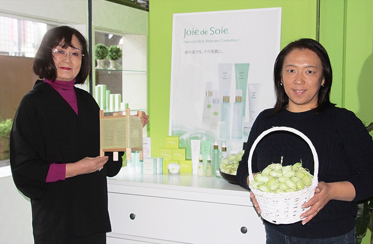 同社は、国内の限られた地域で飼育されている天然のまゆ「天蚕」を直接農家から購入。天蚕シルクの特長である「天蚕シルクフィブロイン(アミノ酸たんぱく質)」を抽出する特許製法を用いた世界初のスキンケア化粧品を開発・販売中だ。