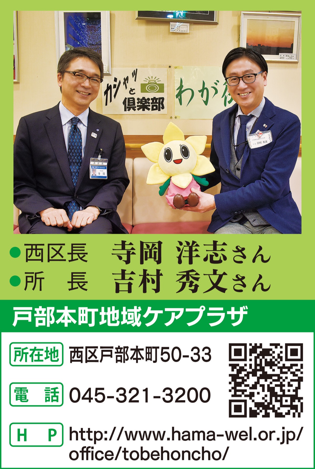 京急戸部駅ほぼ目の前の戸部本町地域ケアプラザは、西区で一番新しい地域ケアプラザ。戸部から藤棚、みなとみらいまで、西区でも幅広いエリアを受け持ち、地域における福祉・保健活動の振興やサービスの提供を図っています。