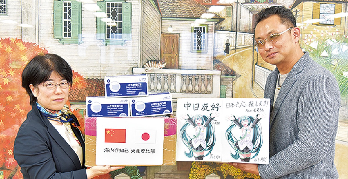 琥珀色さんによると、音声合成による仮想アイドルとして人気の「初音ミク」を通じて知り合った中国の友人、侯未昊さんと高 さんが、日本でマスクが不足していることを知り、寄付を申し出たという。